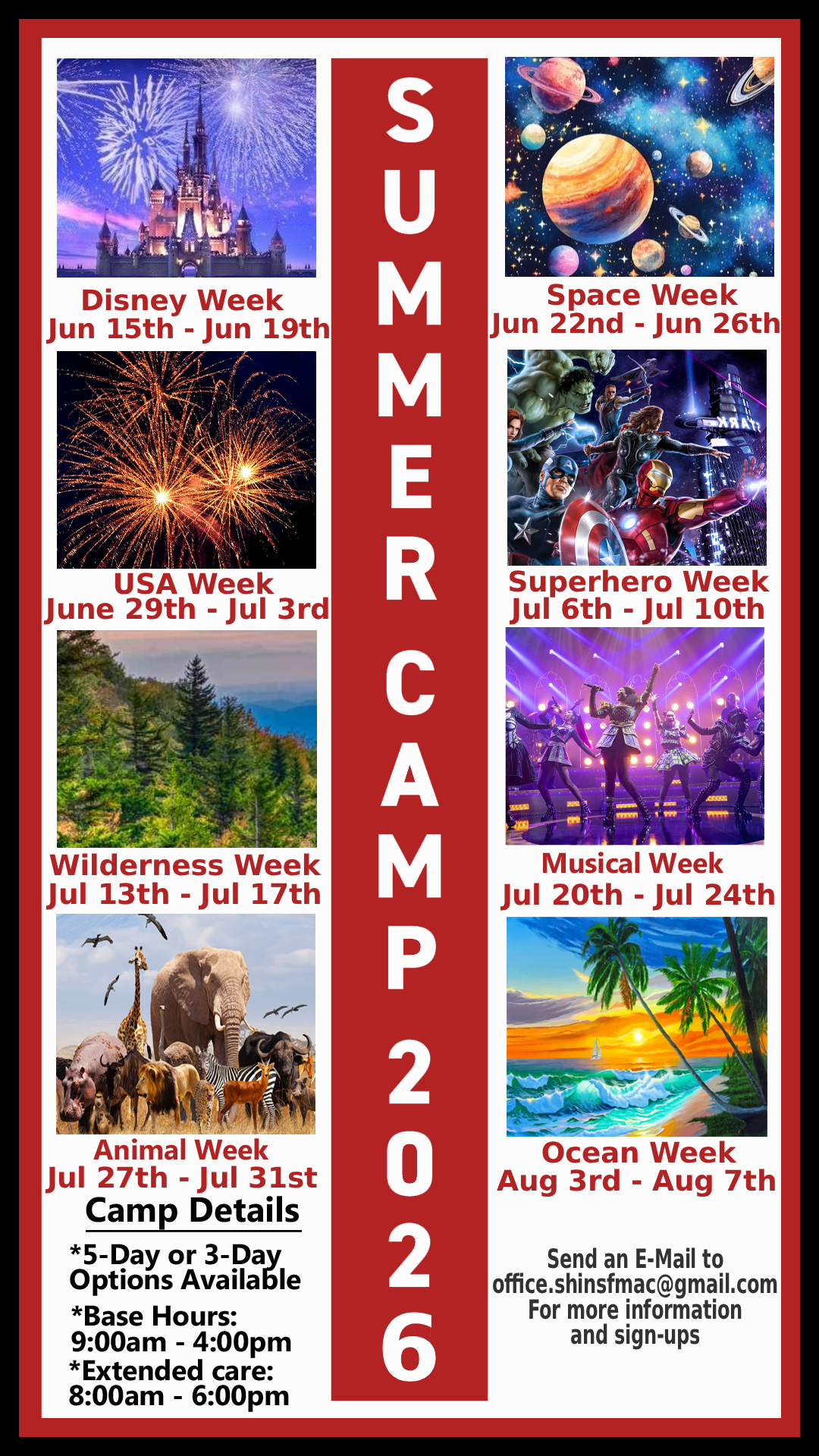 These short-term camps give kids something to do during breaks from school, especially while parents may still have to work. Camps are scheduled and organized by week. The base hours of camp are 9:00 am-4:00 pm. However, extended care hours are available as early as 8:00 am and as late as 6:00 pm for an additional fee.